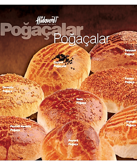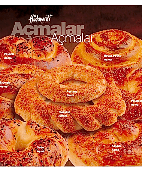 Zeytinli, Patatesli, Sade,Kaşarlı, Peynirli, Kıymalı, Beyaz Peynirli, Pastane Simiti, Sosyete Simiti